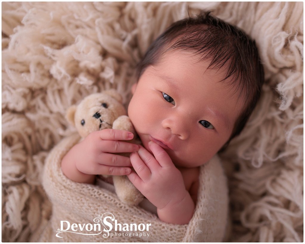 Baby J was wide awake for most of his session, showing off the most adorable bright eyes. (Those curious looks melt me every time!) Once swaddled, he finally drifted off to sleep. That gave us the perfect mix of awake newborn portraits and peaceful, dreamy images every parent loves.